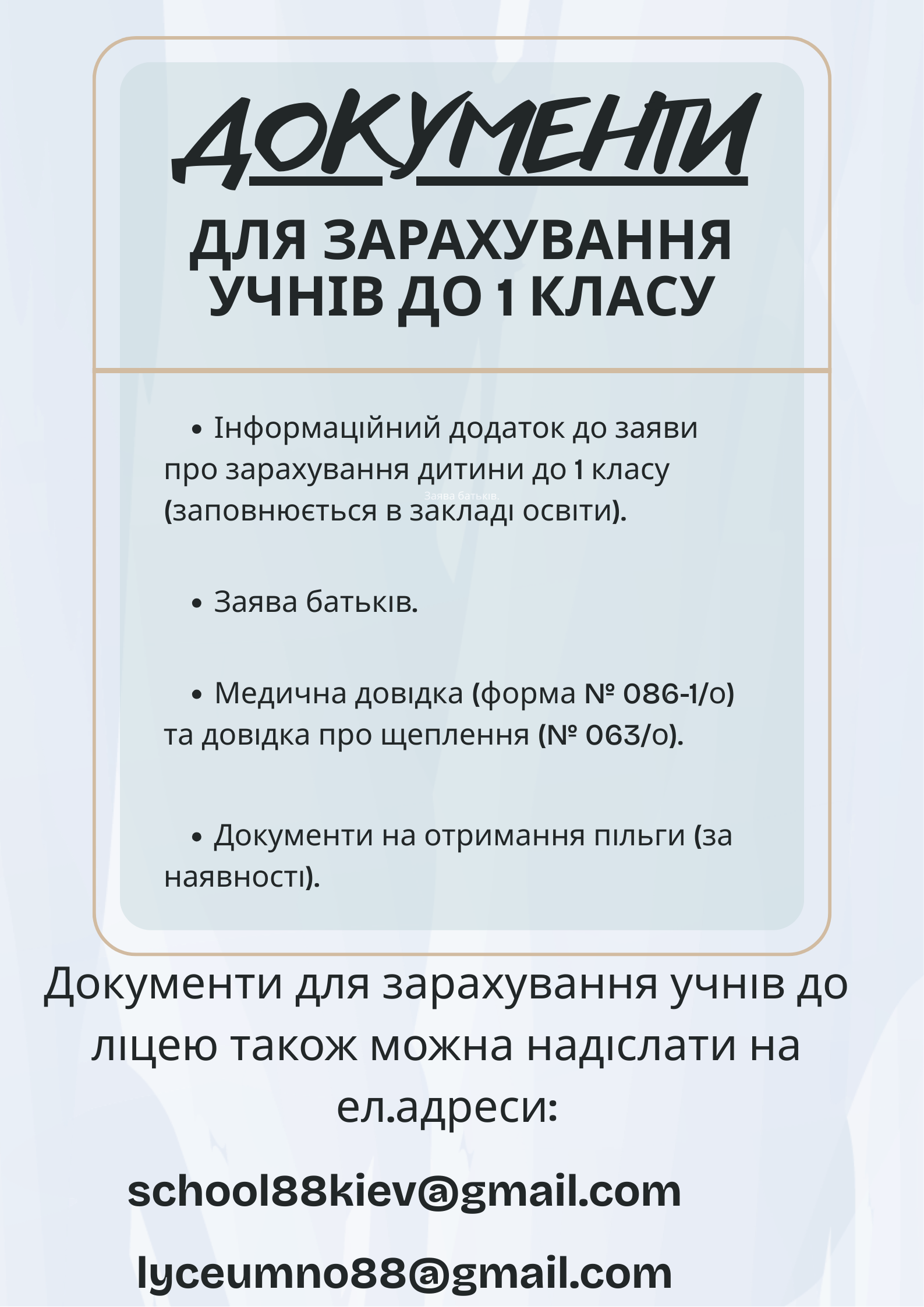 Шановні батьки! Розпочався прийом документів до 1 класів на 2023-2024 навчальний рік. Заяву можна подати директору.